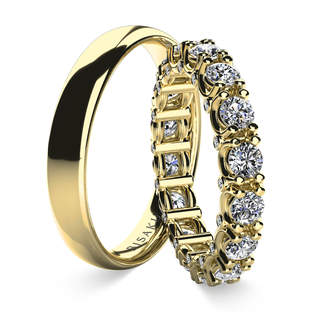 Dámský model zdobí po celém obvodu větší kameny o průměru 3,25 mm, zasazené v otevřeném krapnovém uchycení, které jim umožňuje naplno vyniknout. Pánský prsten je hladký a precizně leštěný, představuje decentní doplněk k dámskému modelu.