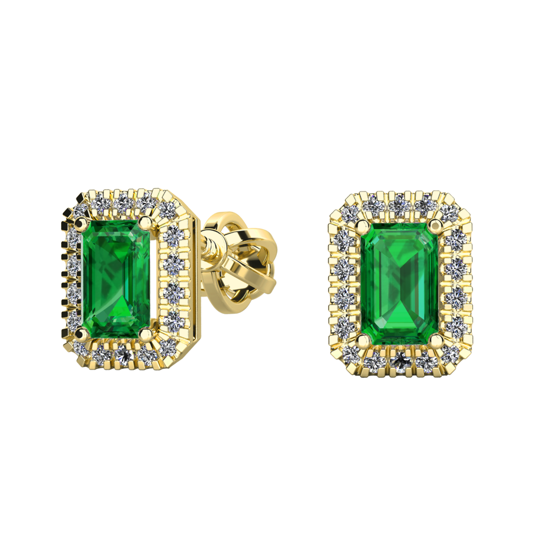 Náušnice v halo stylu s centrálním emerald cut smaragdem kombinují moderní design s výrazným hlavním kamenem. Rám menších diamantů kolem něj odráží světlo a přidává náušnicím zajímavý vzhled. Tyto náušnice se hodí na různé příležitosti a mohou být skvělým dárkem! Uveďte prosím do poznámky barvu zlata, o kterou máte zájem. (S100/1)