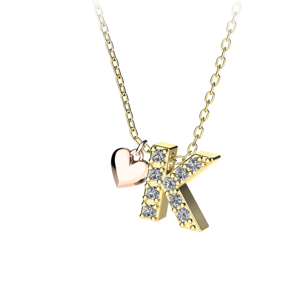 Náhrdelník s písmenkem střední velikosti, doplněný o malé srdíčko. Na krku vypadá úchvatně. Vyberte si písmenko, které je Vám nejbližší a mějte jej při sobě neustále. Vy víte, co pro Vás znamená. Na Vaše přání jej vyrobíme v kterékoliv barevné kombinaci nebo z jedné barvy zlata.