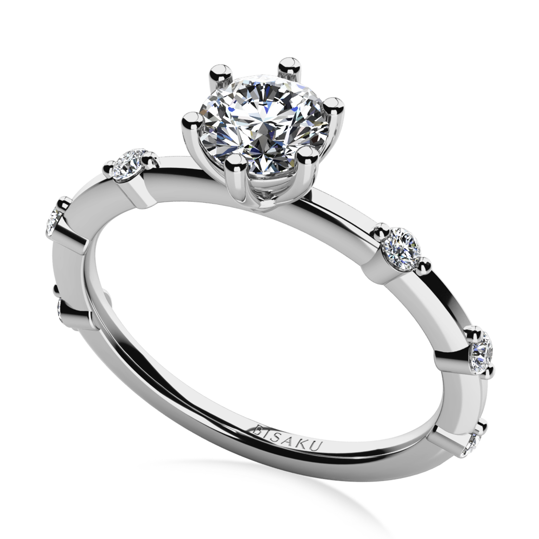 Nejen jako zásnubní prsten ale i jako krásný šperk může posloužit prsten Larrisa, který má charakteristicky rozložených šest kamenů po obroučce a jeden větší centrální kámen přímo uprostřed.